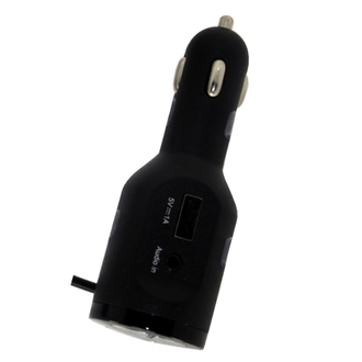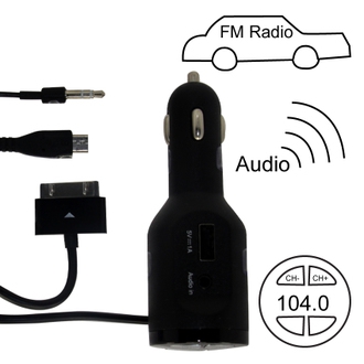 - Характеристики: FM-трансмиттер в гнездо прикуривателя для передачи аудиосигнала от вашего мобильного устройства на бортовую акустическую систему автомобиля в FM - радио-диапазоне; совместим практически с любыми мобильными устройствами: iPhone/iPod/iPad, смартфоны и планшеты Samsung, HTC, Blackberry, Sony, Nokia и др.; встроенная зарядка для смартфонов; USB и 3,5мм аудио порт; управление воспроизведением; в комплекте 3,5мм аудиокабель, USB-microUSB кабель и неразьемный Apple 30pin кабель.
