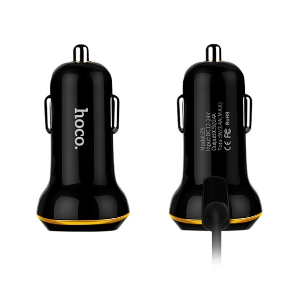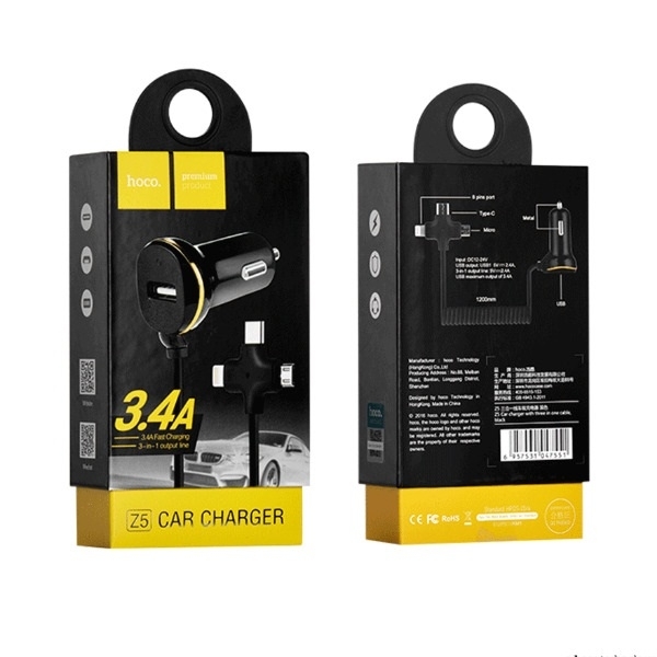 - Характеристики: Автомобильное зарядное устройство Hoco Z5 Car Charger 3 в 1 универсальное.