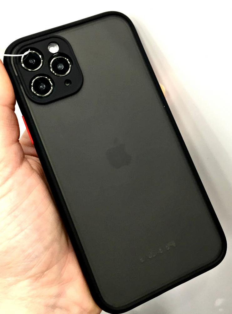 Читать все СтатьиМатовый силиконовый чехол на IPhone 11 PRO , затемненный, черная рамка.