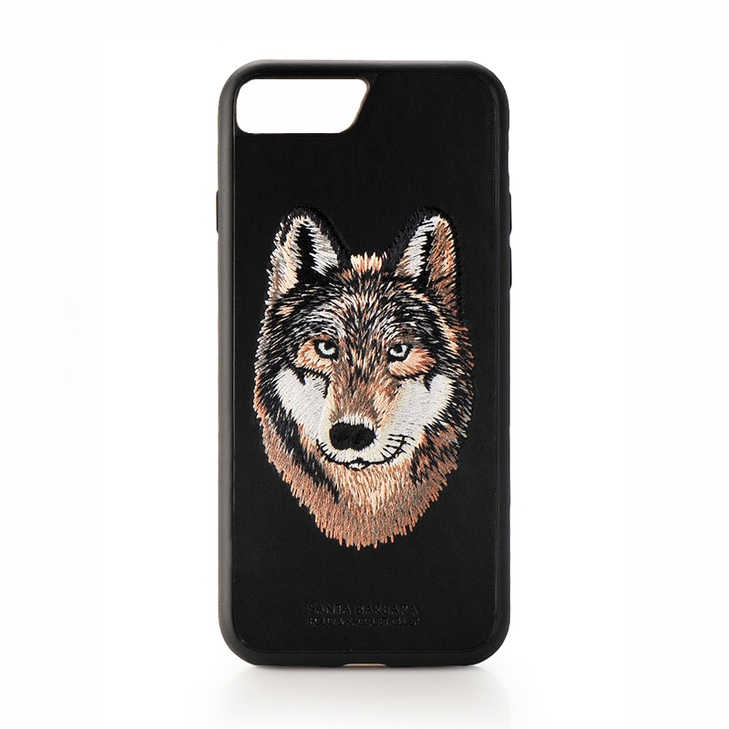 Читать все СтатьиКожаный чехол-накладка для iPhone 7+ Santa Barbara Волк, цвет черный.