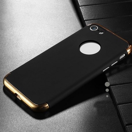 Дизайн чехла-накладки шикарный, мегастильный и утонченный. Матовый черный поликарбонат так и просится в руки, а достойное золотое обрамление добавляет лоск аксессуару.