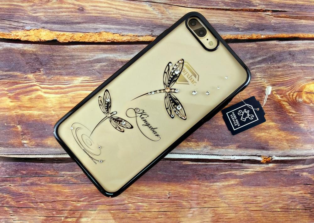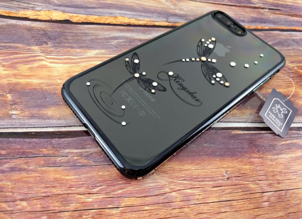 Читать все СтатьиПластиковый чехол накладка на iPhone 7+ Kingxbar, стразы Swarovski, стрекозы, цвет черный.