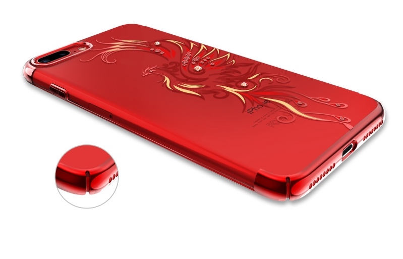 Читать все СтатьиПластиковый чехол накладка на iPhone 7+ Kingxbar, стразы Swarovski, птица феникс, цвет красный.