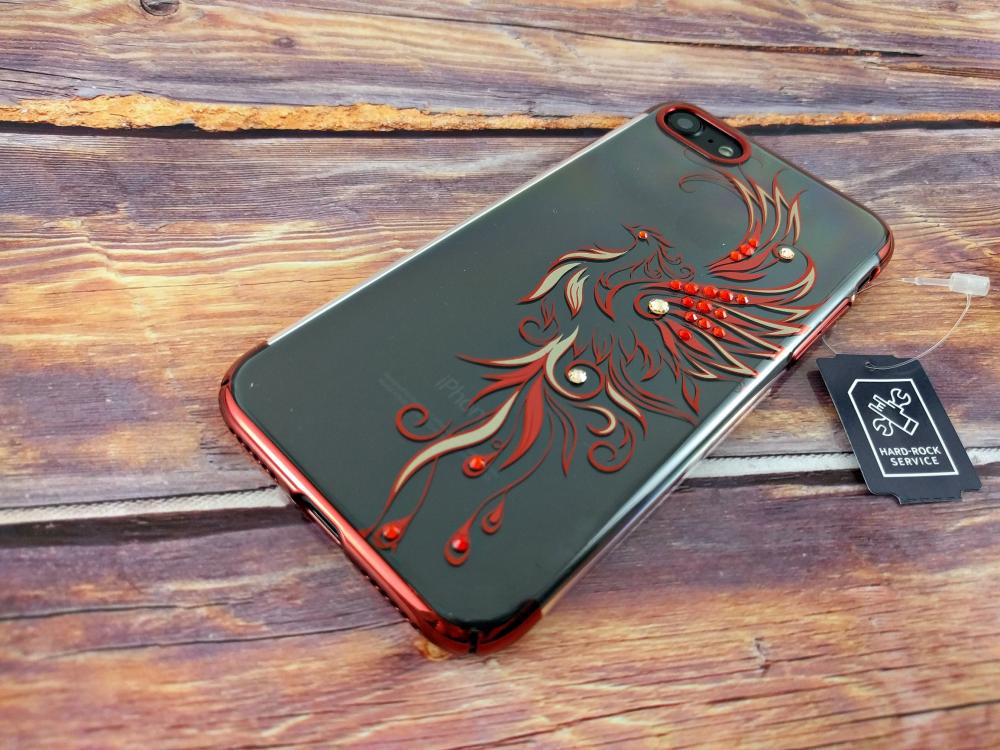 Читать все СтатьиПластиковый чехол-накладка на iPhone 7 Kingxbar, стразы Swarovski, жар-птица, цвет красный.