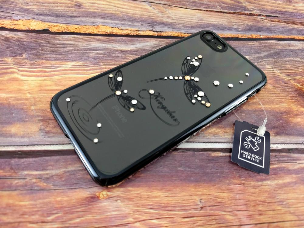 Читать все СтатьиПластиковый чехол-накладка на iPhone 7 Kingxbar, стразы Swarovski, стрекозы, цвет черный.