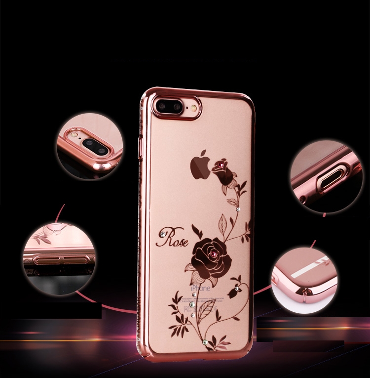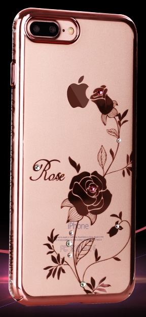 Читать все СтатьиПластиковый чехол-накладка на iPhone 7+ Kingxbar, стразы Swarovski, роза, цвет розовый.