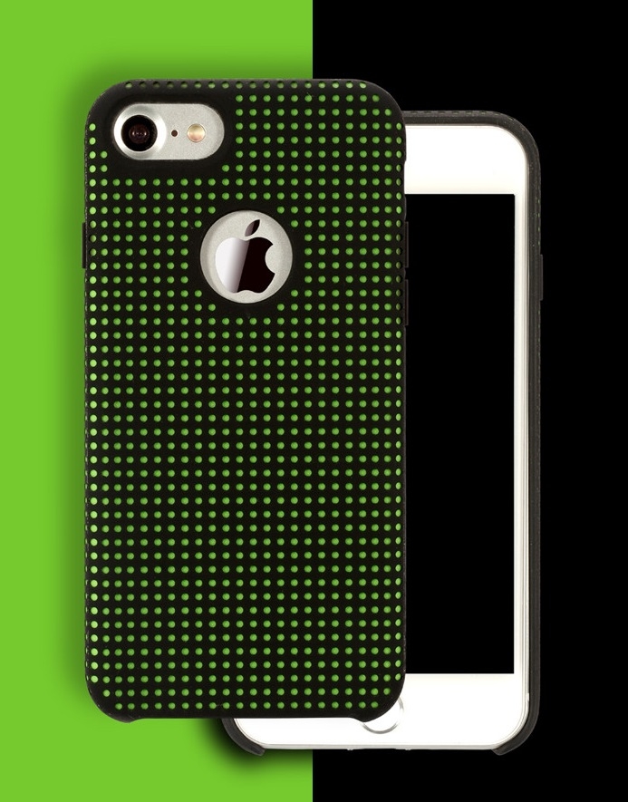 Читать все СтатьиЧехол-накладка Silicone Case для iPhone 7, цвет зеленый с перфорацией.