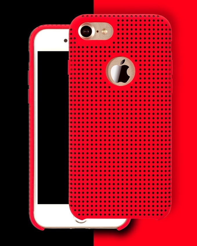 Читать все СтатьиЧехол-накладка Silicone Case для iPhone 7, цвет красный с перфорацией.