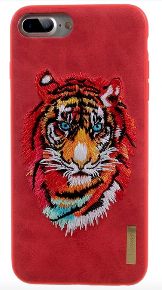 Читать все СтатьиПластиковый чехол-накладка с вышивкой для iPhone 7+/8+ тигр, цвет красный.