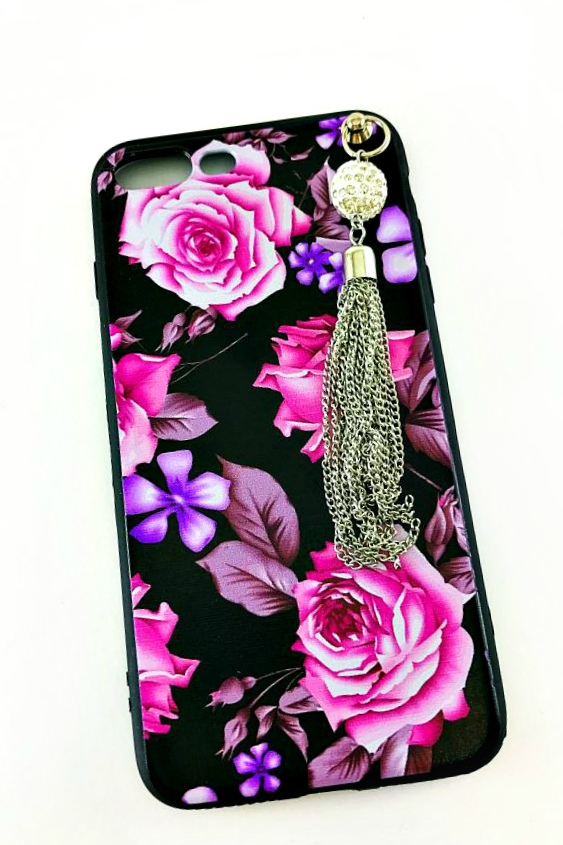 Читать все СтатьиСиликоновый чехол-накладка для iPhone 7+ с брелком из страз, рисунок розы.