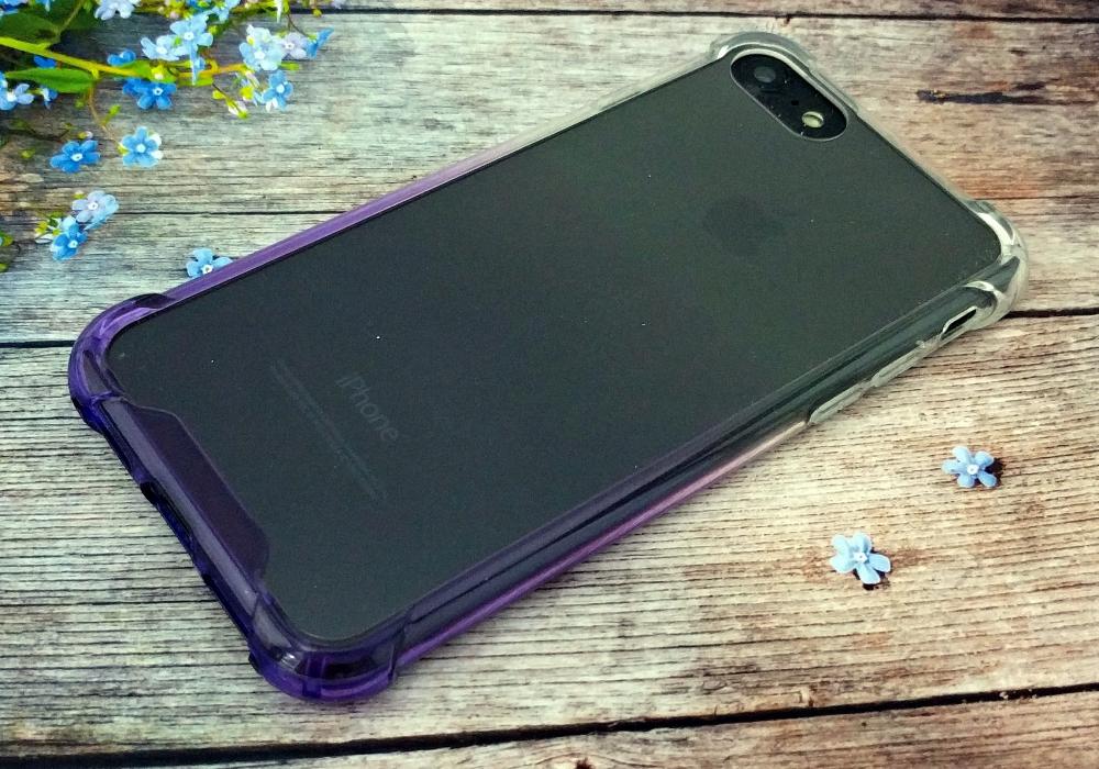 Читать все СтатьиСиликоновый чехол-накладка для iPhone 7 противоударный прозрачный градиент, цвет фиолетовый.