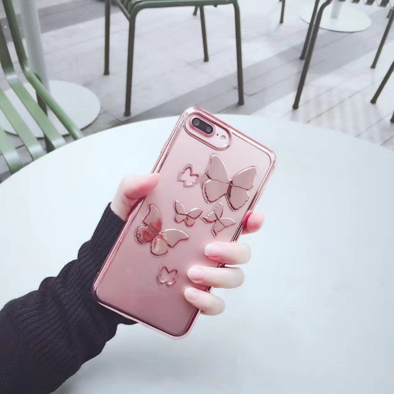 Читать все СтатьиСиликоновый чехол-накладка для iPhone 7/8+ с бабочками, цвет розовый.
