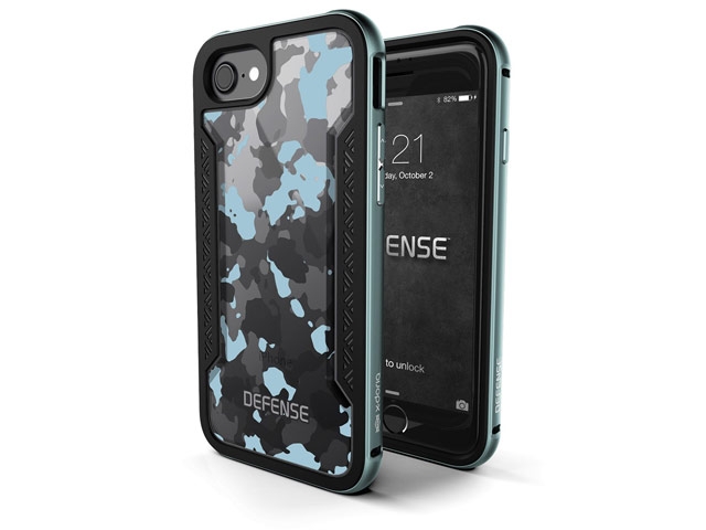 - Характеристики: Черно-голубой камуфляжный противоударный чехол X-doria Defense Shield для защиты смартфона Apple iPhone 7 (изготовлен из авиационного алюминия, оснащен резиновой прослойкой для защиты от ударов, стандарт армейской защиты MIL-STD-810G).Надежная защита Вашего телефона.