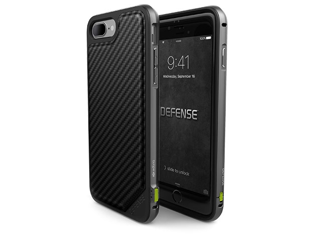 - Характеристики: Черный противоударный чехол c черной карбоновой вставкой X-doria Defense Lux для защиты смартфона Apple iPhone 7 plus (изготовлен из авиационного алюминия, оснащен резиновой прослойкой для защиты от ударов, стандарт армейской защиты MIL-STD-810G).