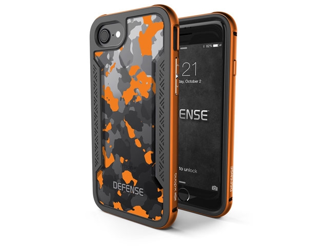 - Характеристики: Черно-оранжевый камуфляжный противоударный чехол X-doria Defense Shield для защиты смартфона Apple iPhone 7 (изготовлен из авиационного алюминия, оснащен резиновой прослойкой для защиты от ударов, стандарт армейской защиты MIL-STD-810G).Надежная защита Вашего телефона.