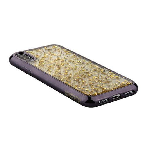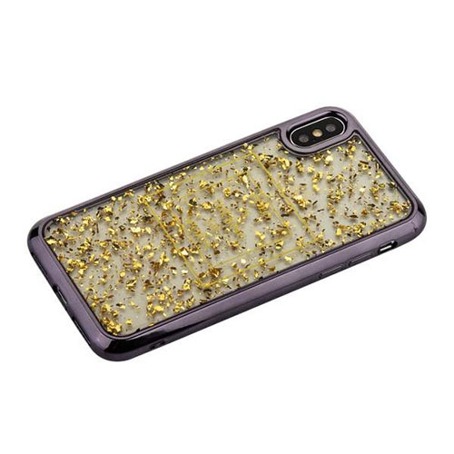 Читать все СтатьиЧехол-накладка на iPhone X с вкраплениями из золотой фольги, прозрачный.