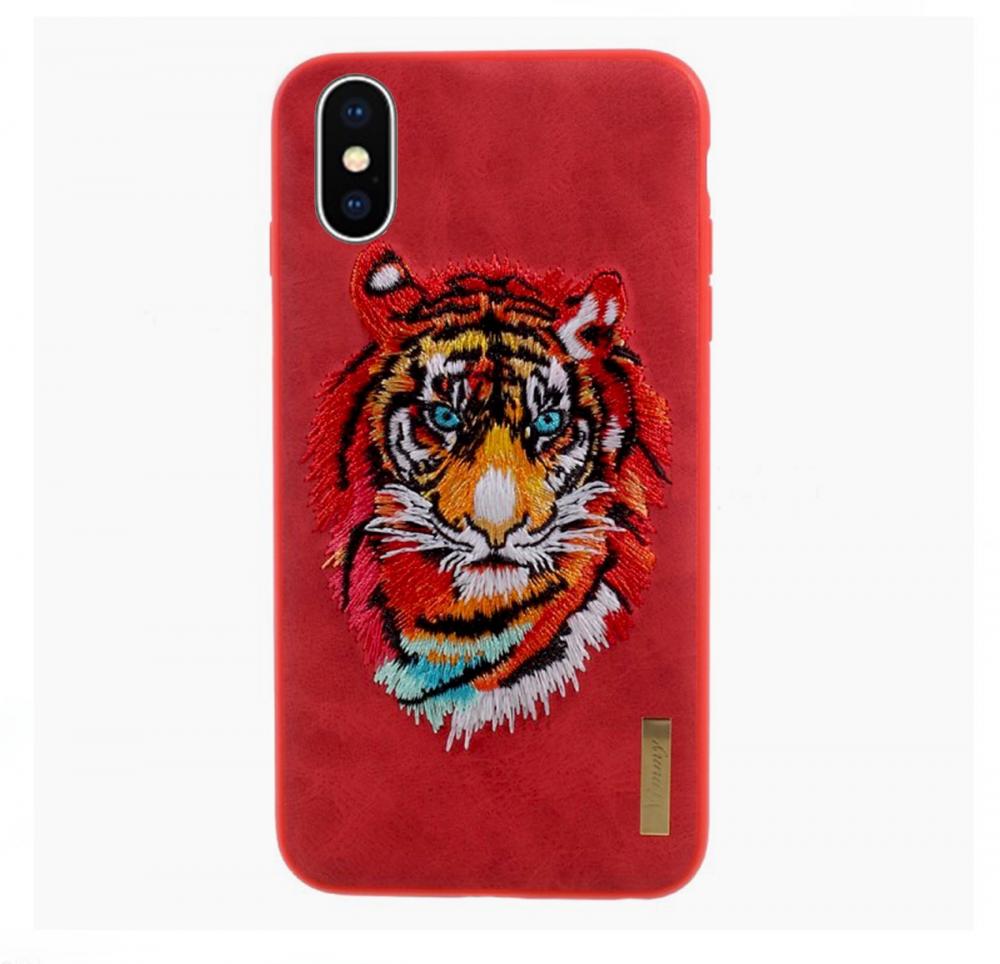 Читать все СтатьиПластиковый чехол-накладка с вышивкой для iPhone X тигр, цвет красный.