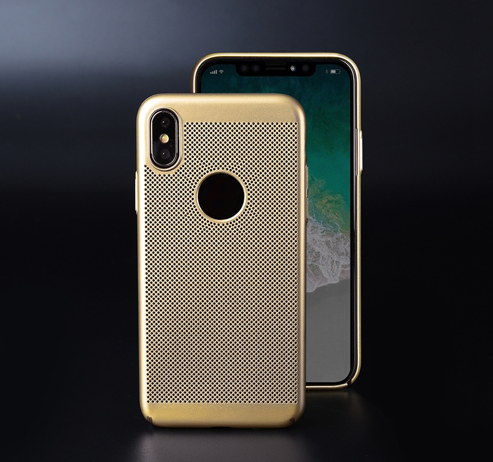 Читать все СтатьиПластиковый чехол-накладка для iPhone X перфорация, цвет золото.