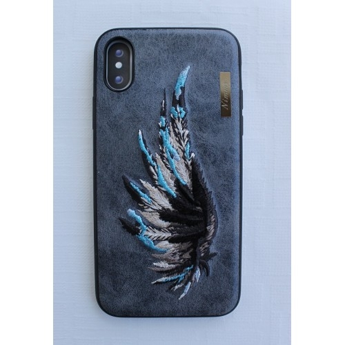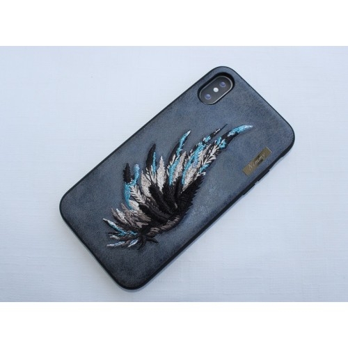 Читать все СтатьиПластиковый чехол-накладка с вышивкой для iPhone X крыло, цвет серо-синий.