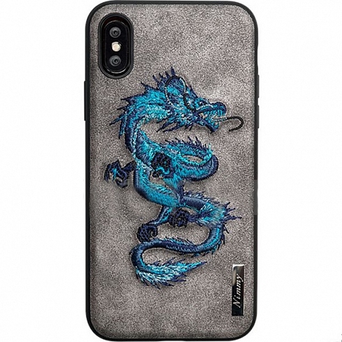 Читать все СтатьиПластиковый чехол-накладка с вышивкой для iPhone X дракон, цвет серый.