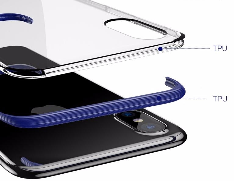 Читать все СтатьиСиликоновый чехол Baseus для iPhone X прозрачный с каймой снизу и сверху, цвет синий.