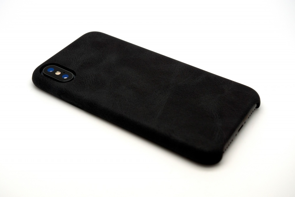 Читать все СтатьиПластиковый чехол-накладка для iPhone X с рисунком под кожу, цвет черный.