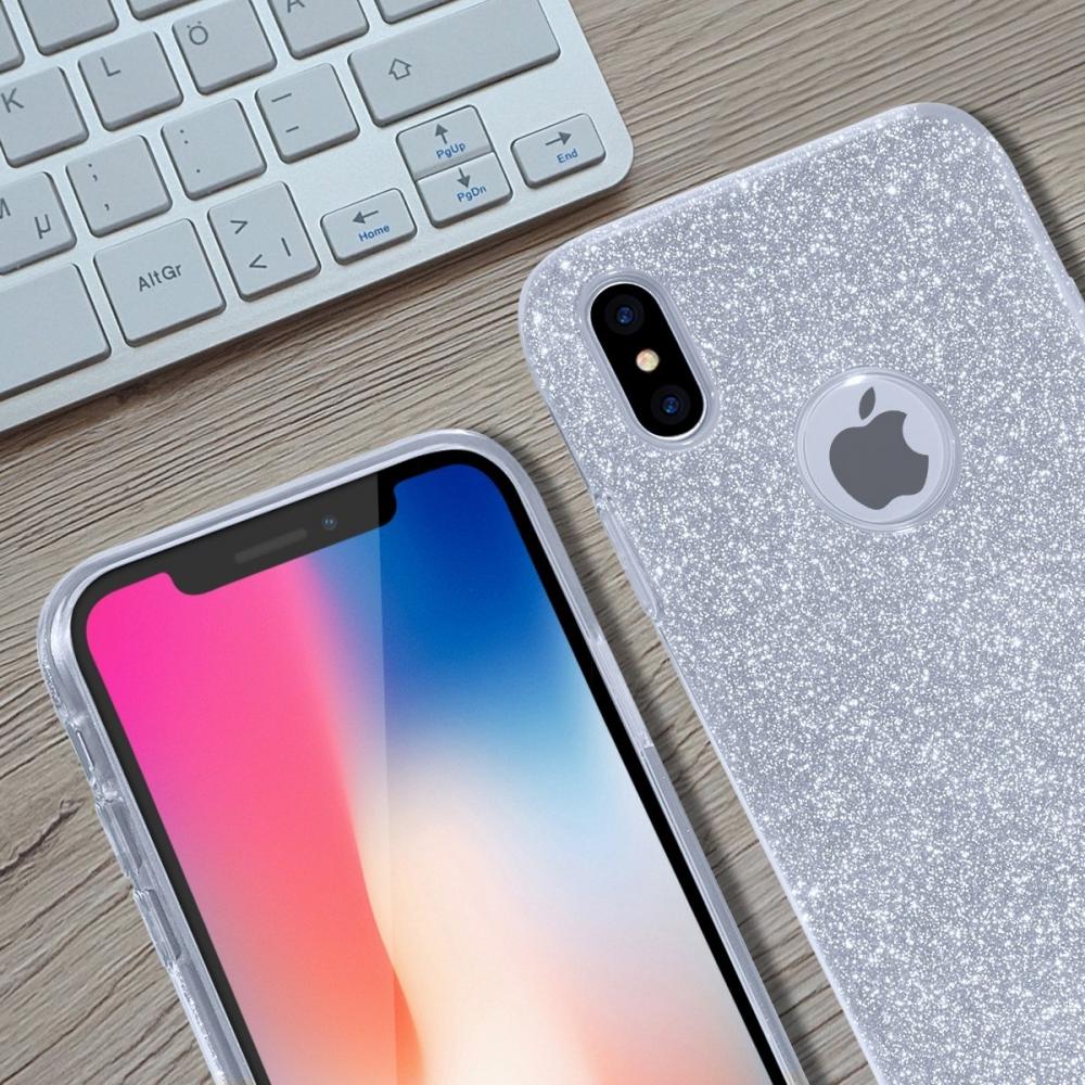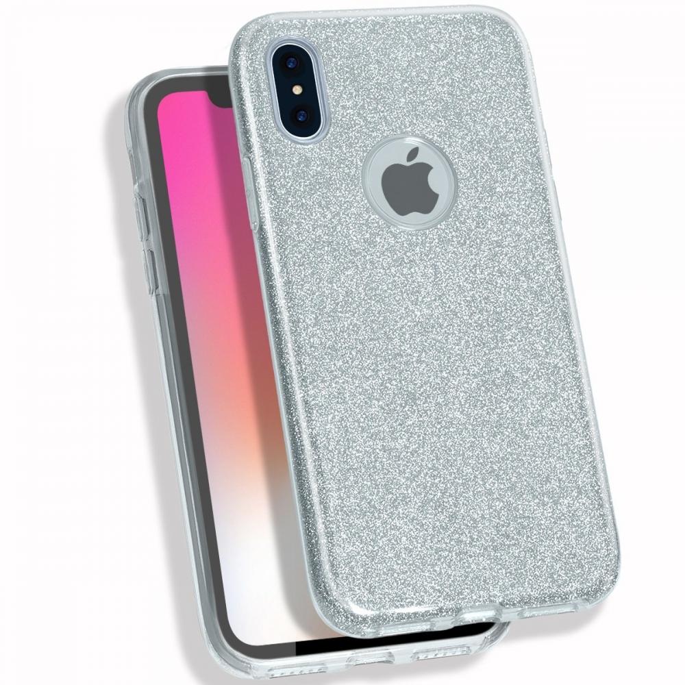 Читать все СтатьиСиликоновый чехол-накладка для iPhone X с блестками, цвет серебро.