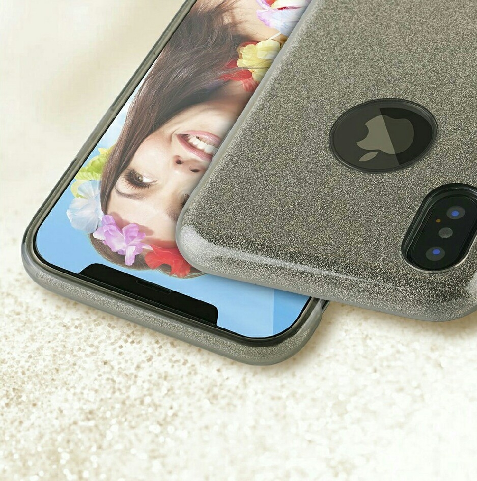 Читать все СтатьиСиликоновый чехол-накладка для iPhone X с блестками, цвет темное серебро.