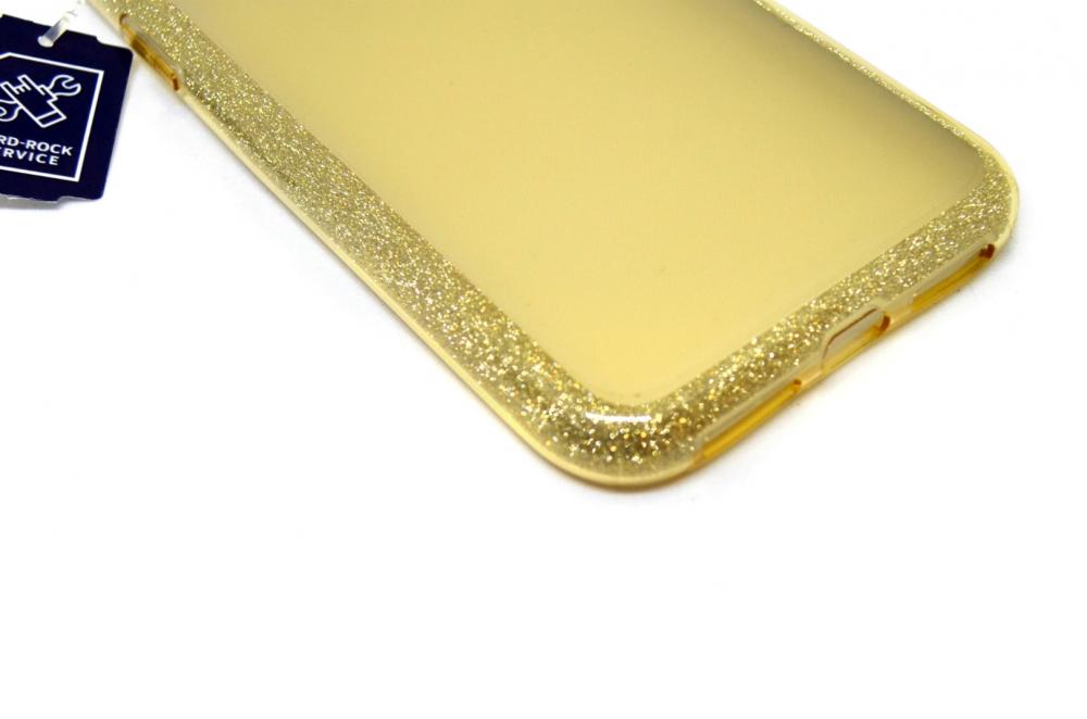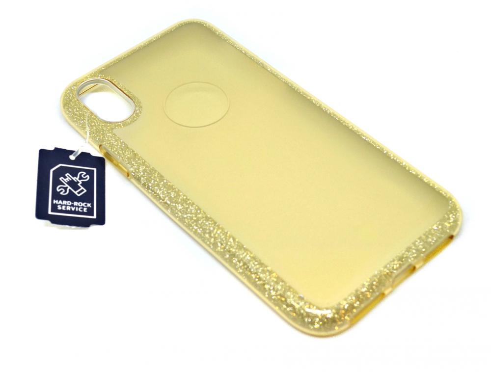 Читать все СтатьиСиликоновый чехол-накладка для iPhone X окантовка с блестками, цвет золото.