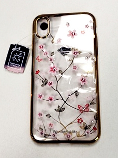 Читать все СтатьиПластиковый чехол-накладка для iPhone XR прозрачный рис.цветы со стразами, цвет золото.