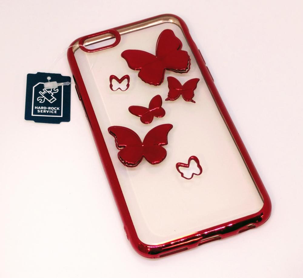 Читать все СтатьиСиликоновый чехол-накладка для iPhone 6/6s с бабочками, цвет красный.