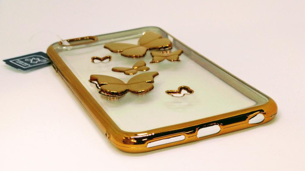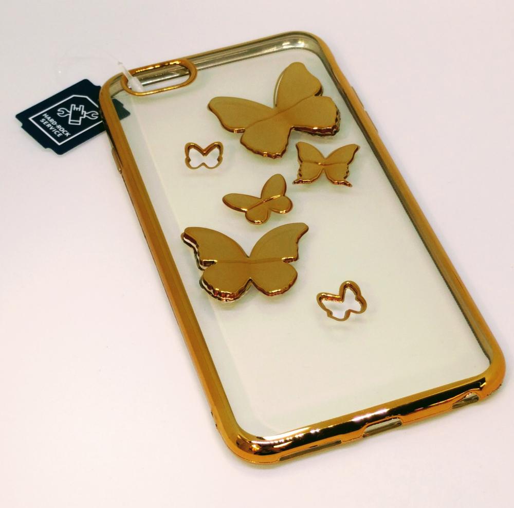Читать все СтатьиСиликоновый чехол-накладка для iPhone 6/6s+ с бабочками, цвет золото.