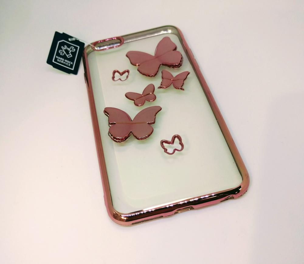 Читать все СтатьиСиликоновый чехол-накладка для iPhone 6/6s с бабочками, цвет розовый.